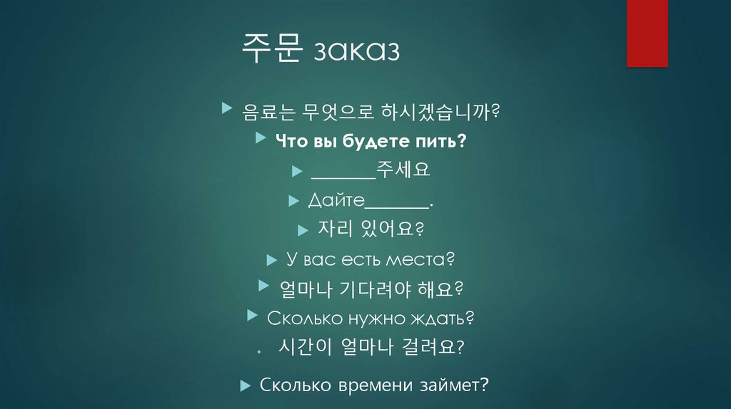 주문 заказ음료는 무엇으로 하시겠습니까?