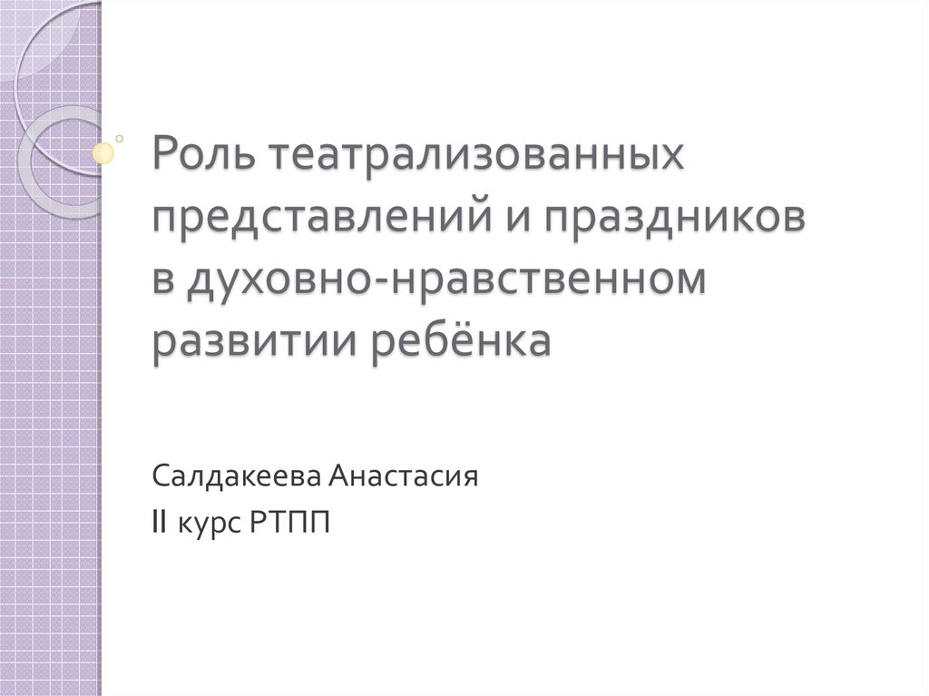 Роль театрализованных представлений и праздников в духовно-нравственном развитии ребёнка