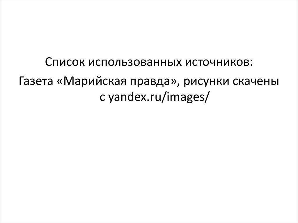Список использованных источников:Газета «Марийская правда», рисунки скачены