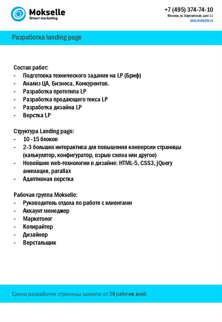 Сроки разработки страницы захвата: от 28 рабочих дней