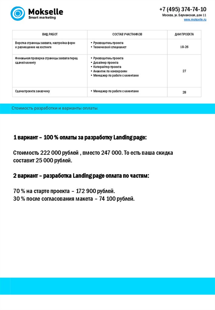 2 вариант – разработка Landing page оплата по частям: