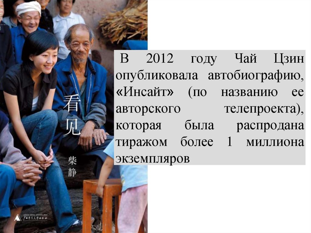 В 2012 году Чай Цзинопубликовала автобиографию,