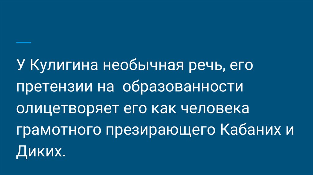 У Кулигина необычная речь, егопретензии на образованности