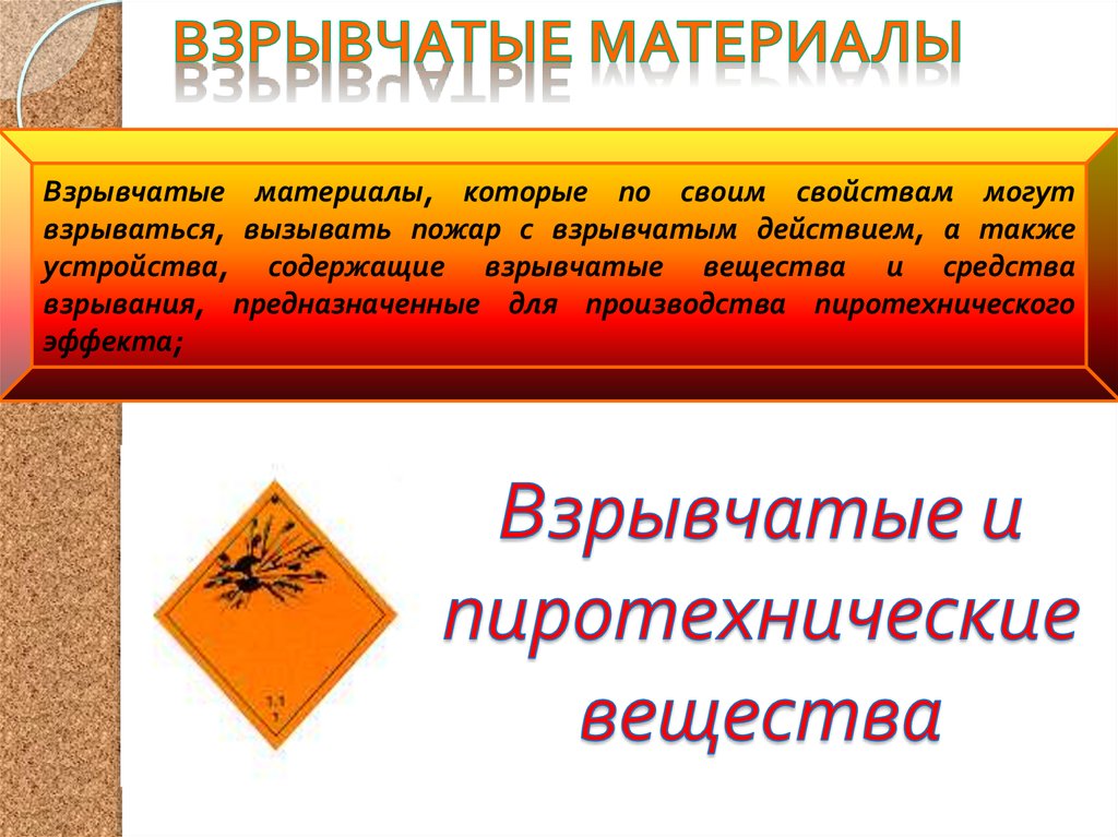 Взрывчатые вещества- это вещества илиизделия, которые при перевозке по