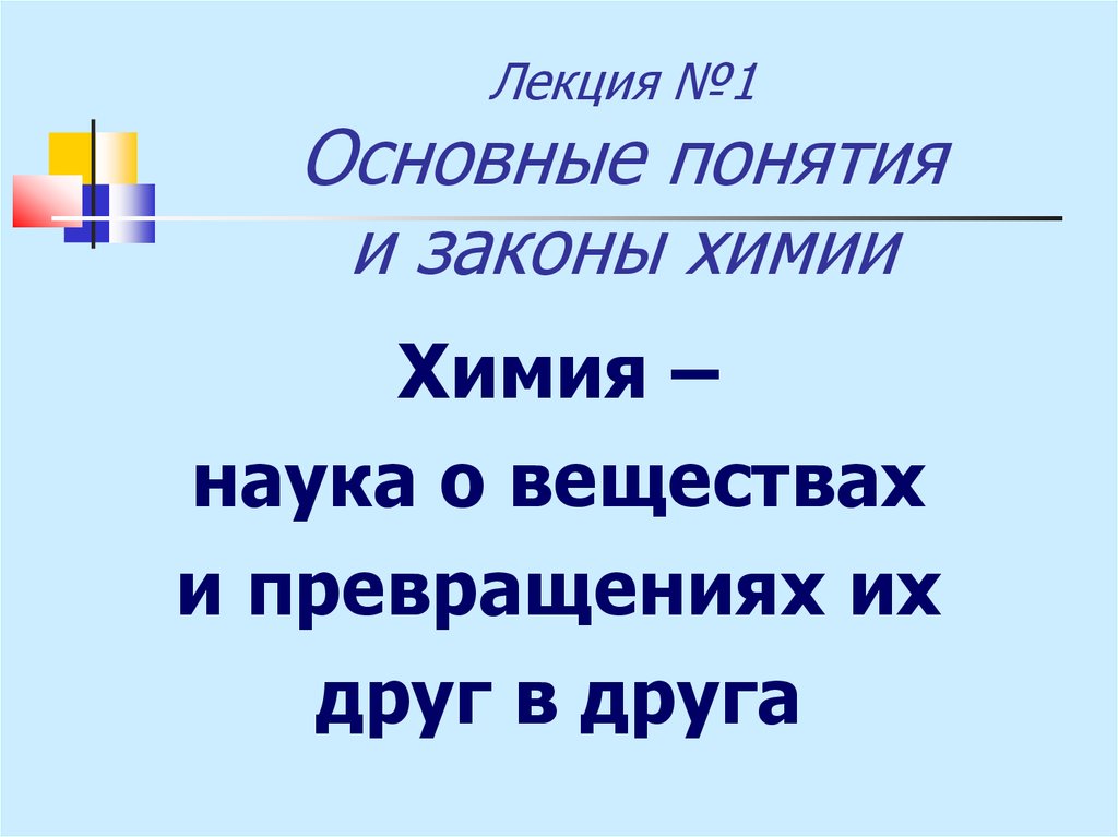 Понятия и законы в химии. (Лекция 1)