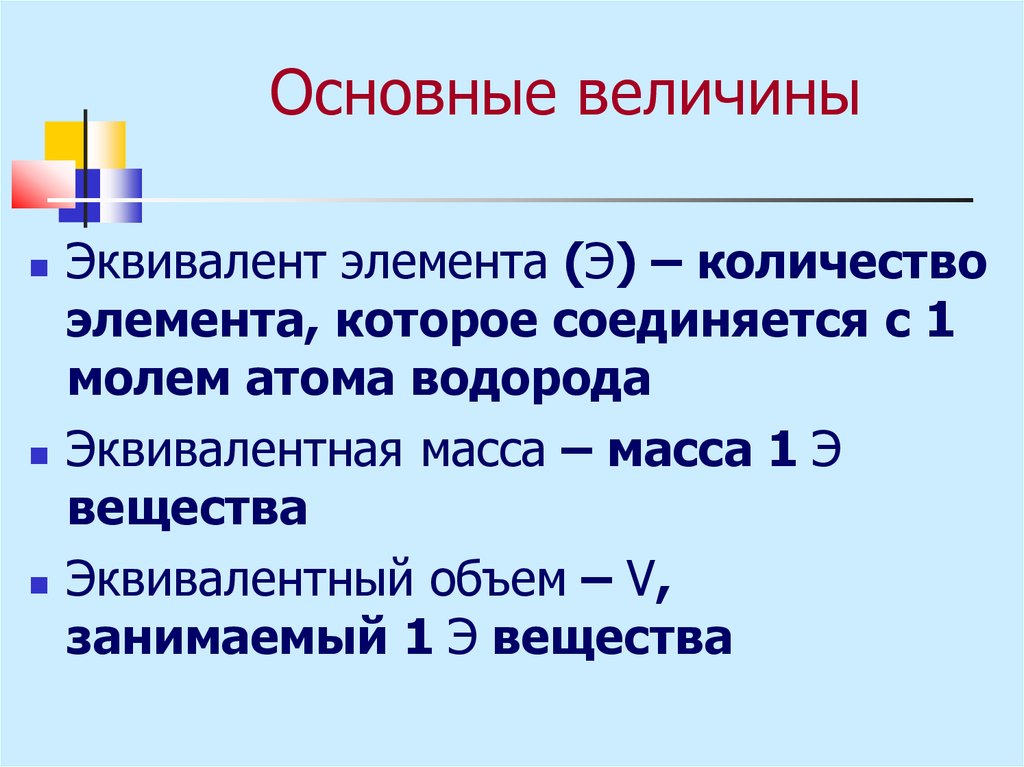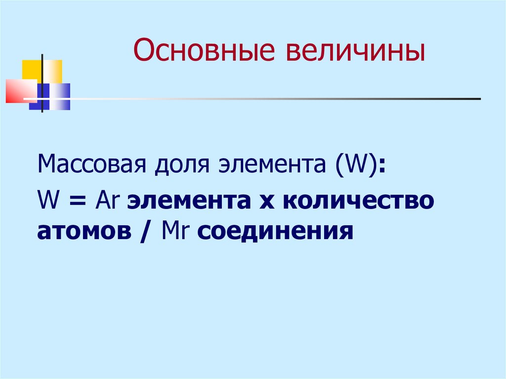Основные величиныМассовая доля элемента (W):