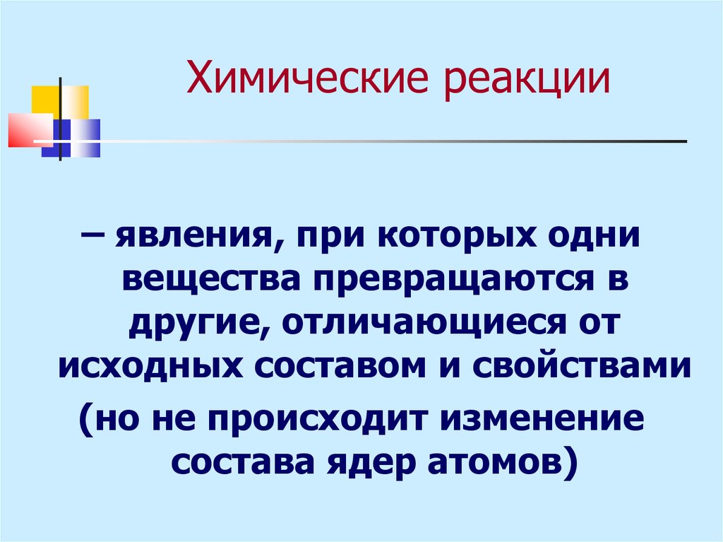 Химические реакции– явления, при которых одни