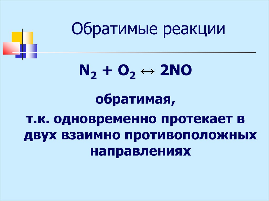 Обратимые реакцииN2 + O2 ↔ 2NO