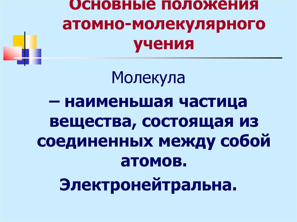 Основные положенияатомно-молекулярного