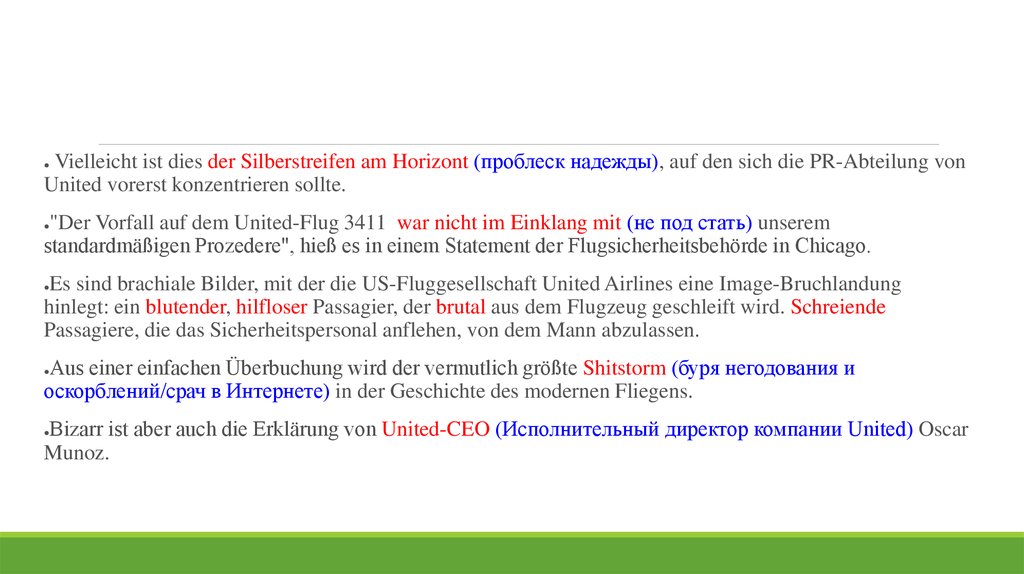 "Der Vorfall auf dem United-Flug 3411 war nicht im Einklang mit (не под стать) unserem