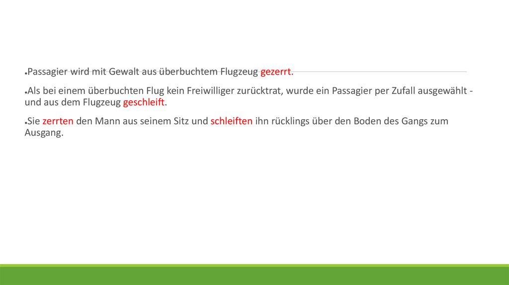 hinlegt: ein blutender, hilfloser Passagier, der brutal aus dem Flugzeug geschleift wird. Schreiende