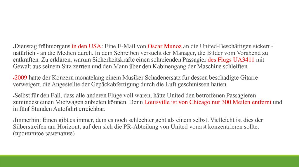 1. Сравнительный анализ статей об авиакомпании United Airlines на материале газеты «Spiegel»