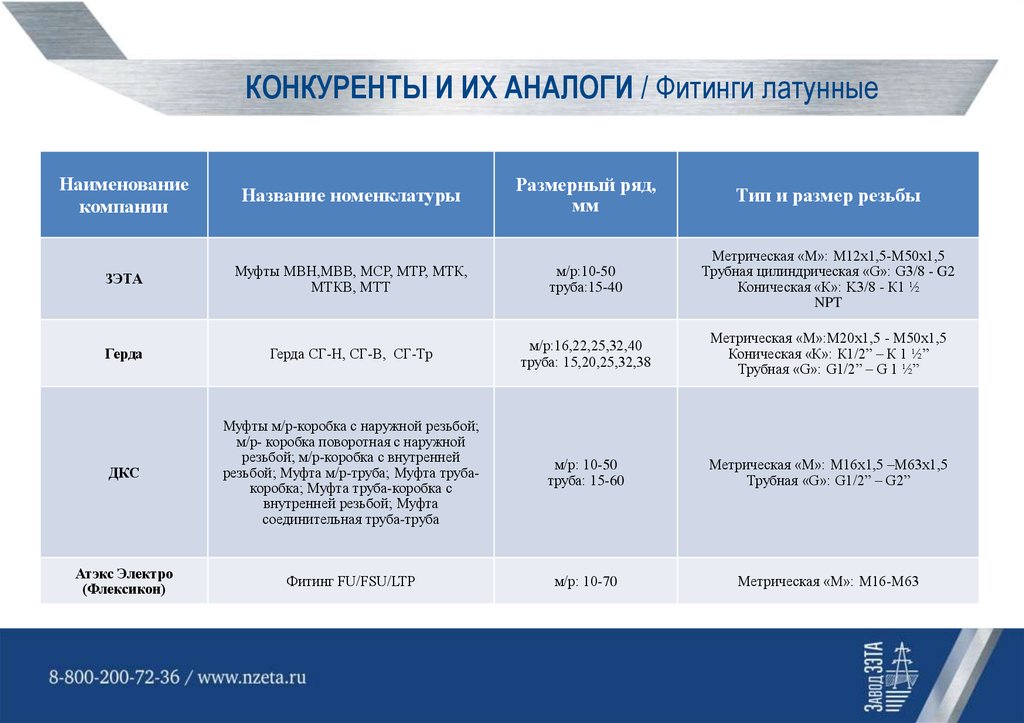 КОНКУРЕНТЫ И ИХ АНАЛОГИ / Фитинги латунныеНаименование