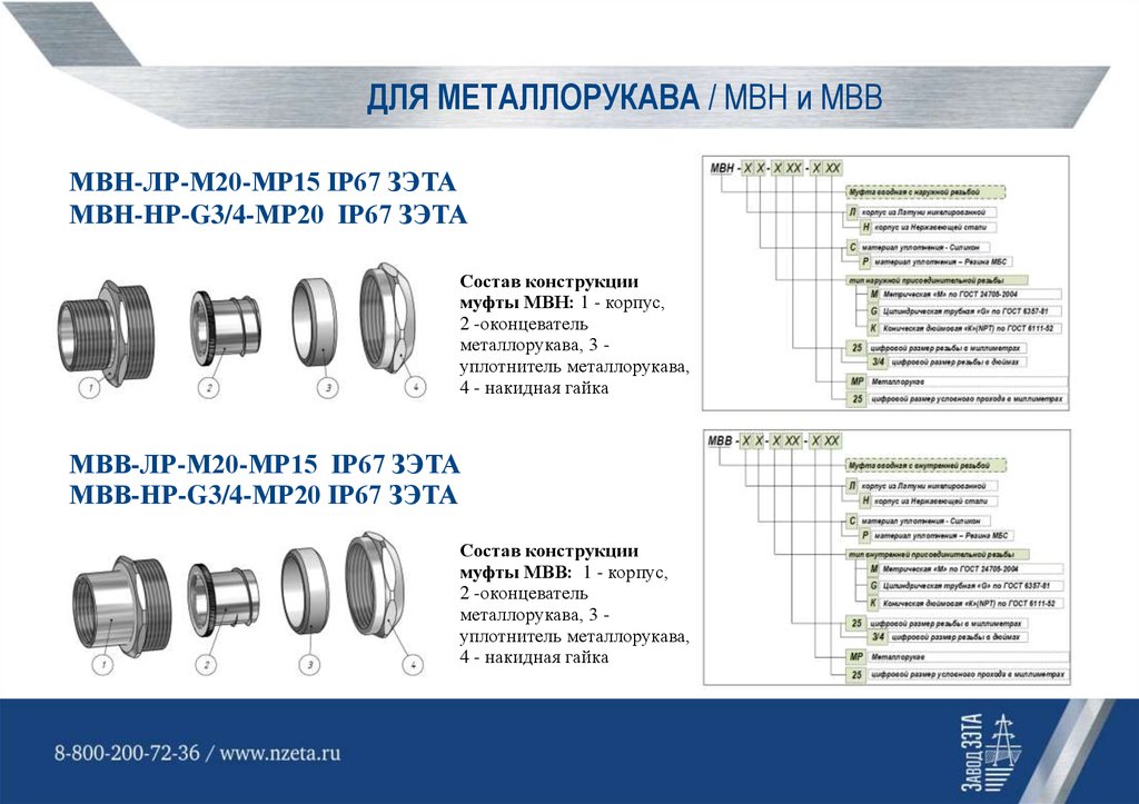 ДЛЯ МЕТАЛЛОРУКАВА / МВН и МВВМВН-ЛР-М20-МР15 IP67 ЗЭТА