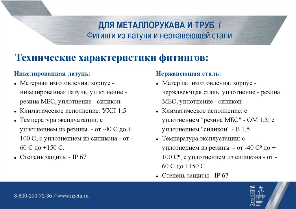 Латунные и нержавеющие фитинги для металлорукава и трубной проводки. Преимущества фитингов АО «ЗЭТА»