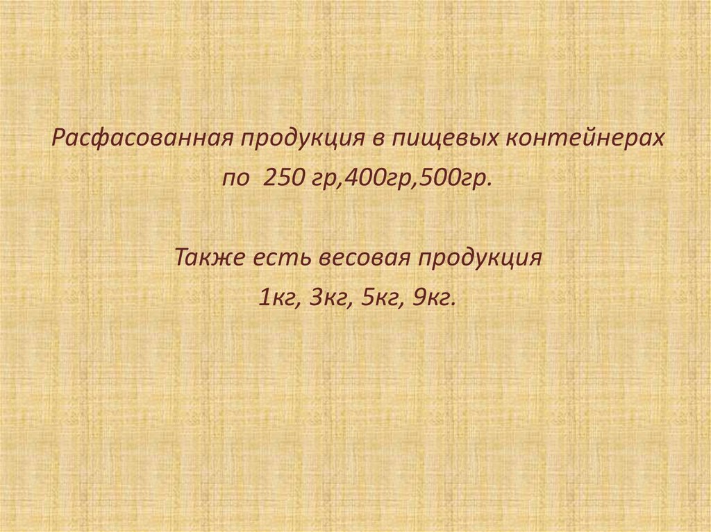 Расфасованная продукция в пищевых контейнерахпо 250 гр,400гр,500гр.