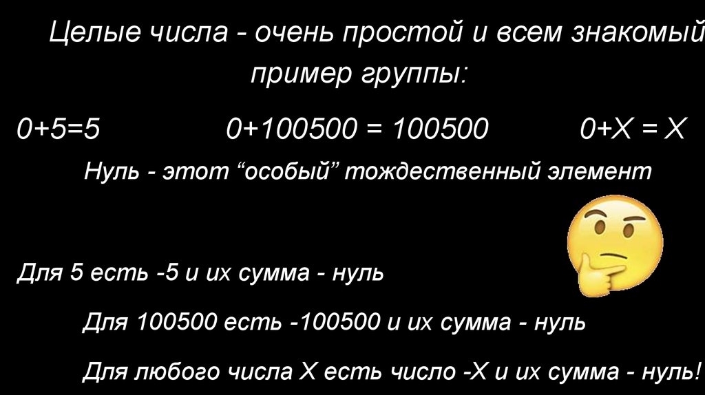 Целые числа - очень простой и всем знакомыйпример группы:
