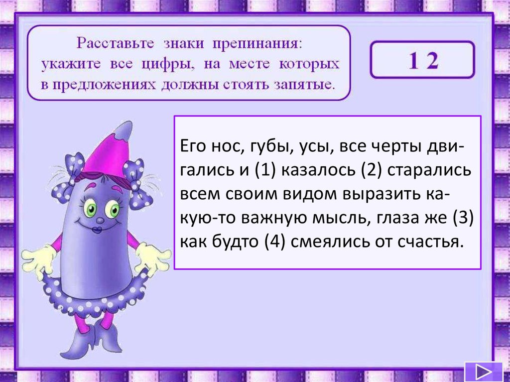 Его нос, губы, усы, все черты двигались и (1) казалось (2) старалисьвсем своим видом выразить какую-то важную мысль, глаза же (3)