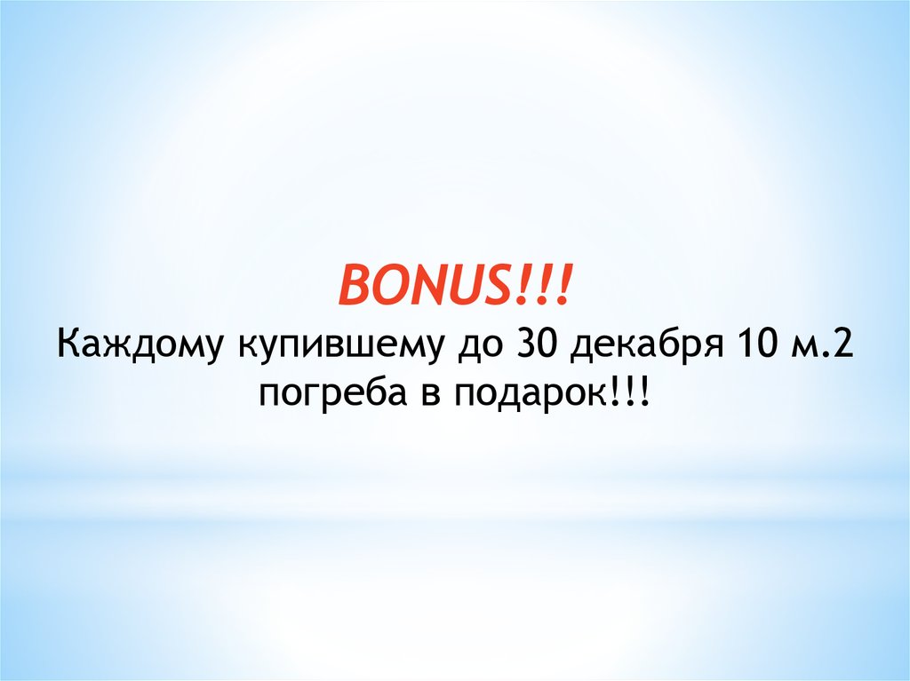 BONUS!!!Каждому купившему до 30 декабря 10 м.2