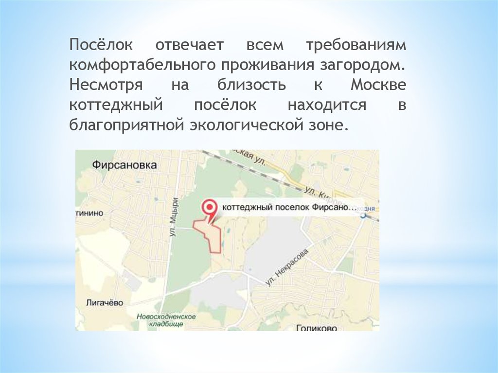 Преимущества поселка1. Фирсановка Life находится