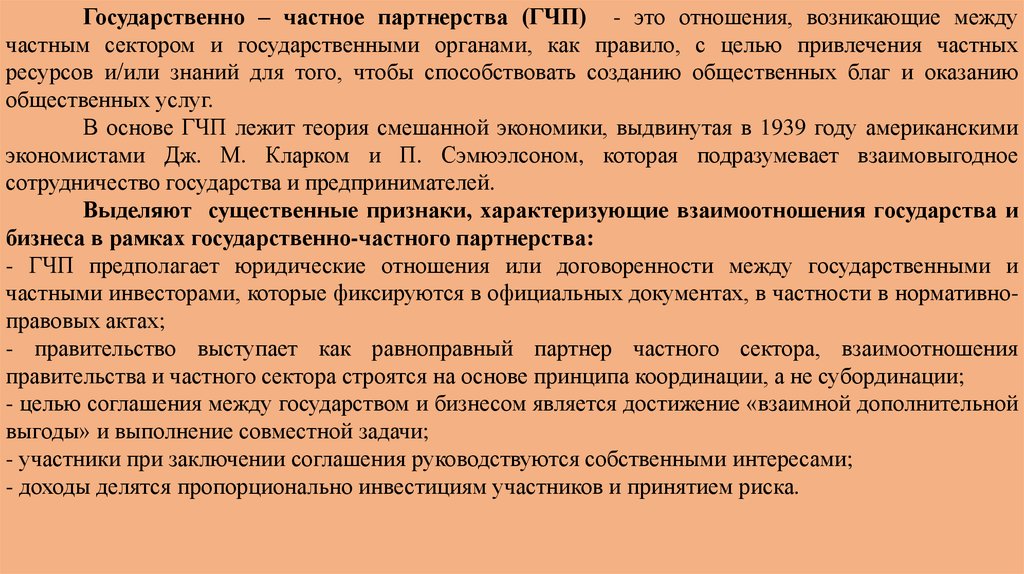 В основе ГЧП лежит теория смешанной экономики, выдвинутая в 1939 году американскими