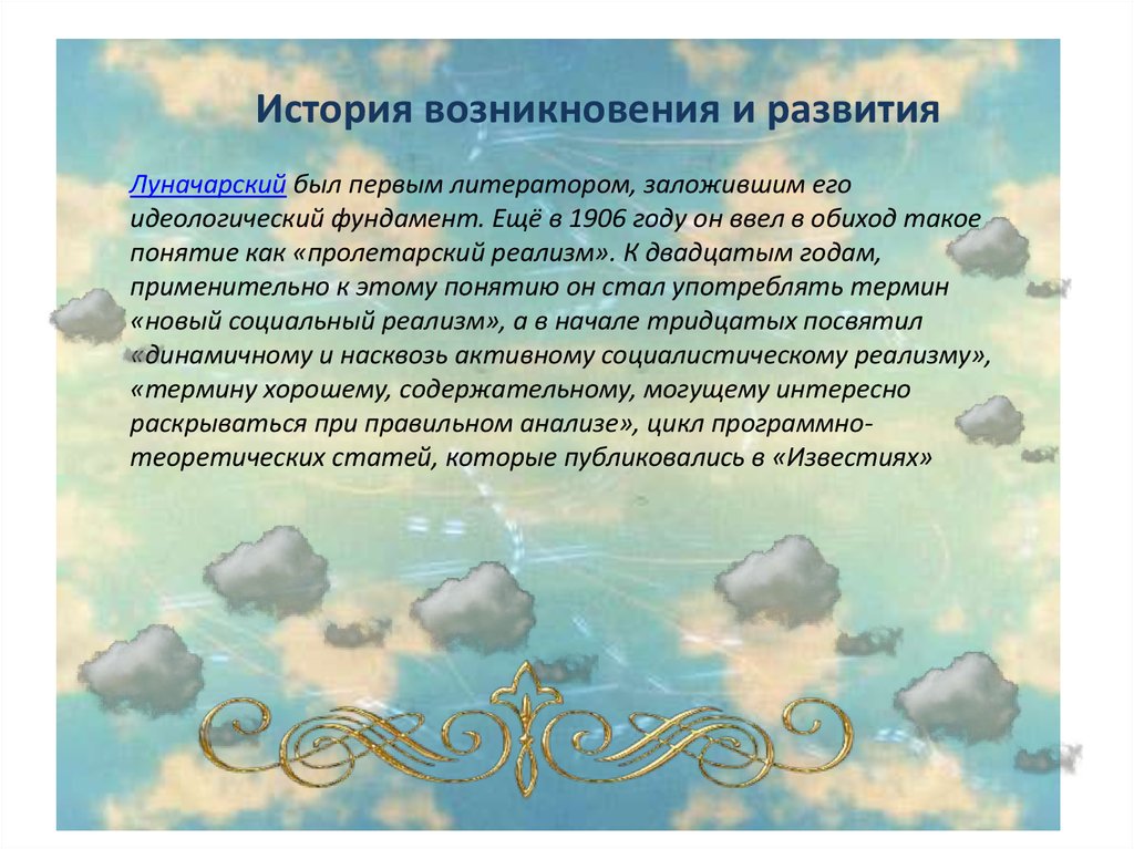 История возникновения и развитияЛуначарский был первым литератором, заложившим его