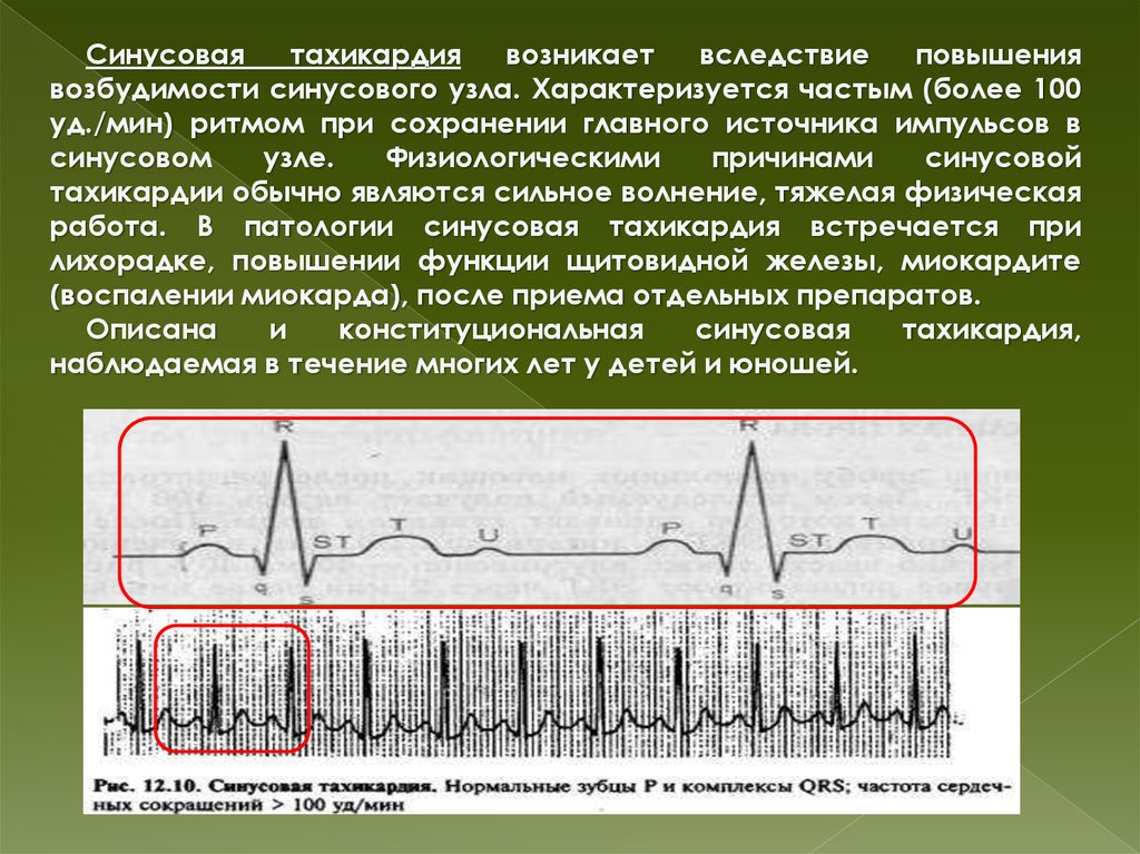 работа. В патологии синусовая тахикардия встречается при