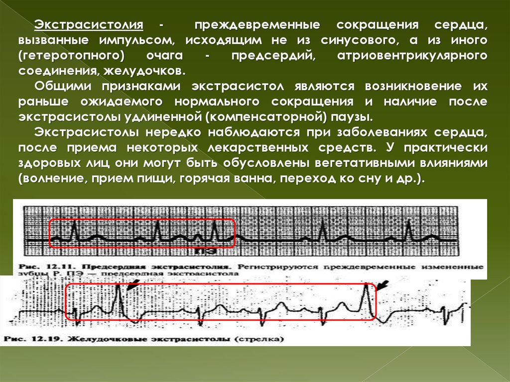 Экстрасистолия преждевременные сокращения сердца,вызванные импульсом, исходящим не из синусового, а из иного