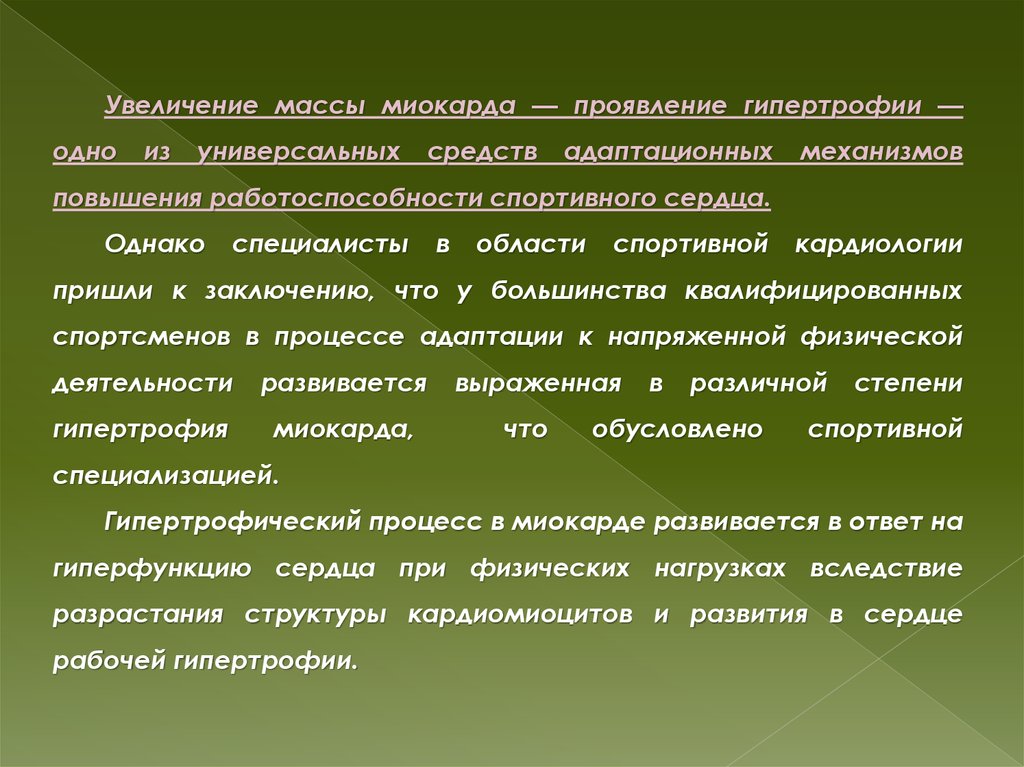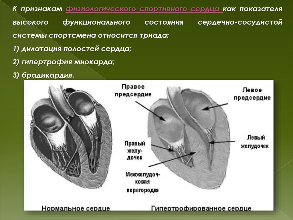 К признакам физиологического спортивного сердца как показателявысокого