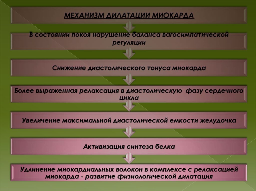 МЕХАНИЗМ ДИЛАТАЦИИ МИОКАРДАВ состоянии покоя нарушение баланса вагосимпатической