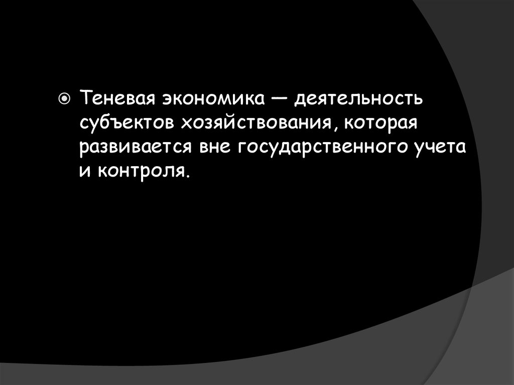 Теневая экономика — деятельностьсубъектов хозяйствования, которая