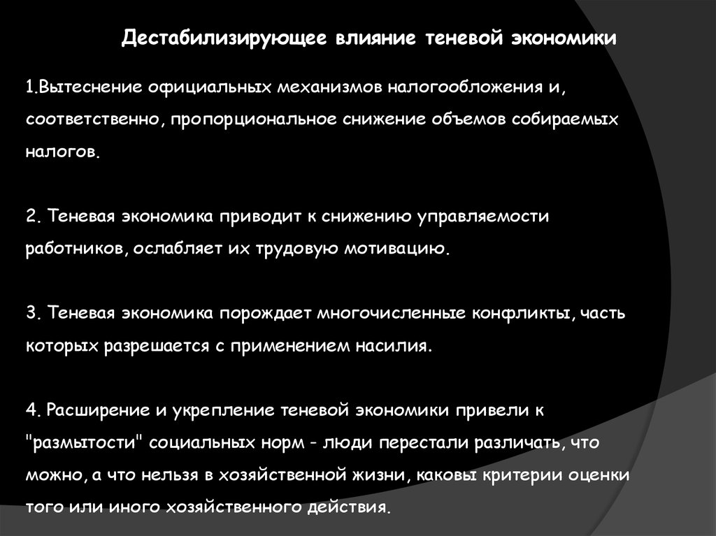 4. Расширение и укрепление теневой экономики привели к