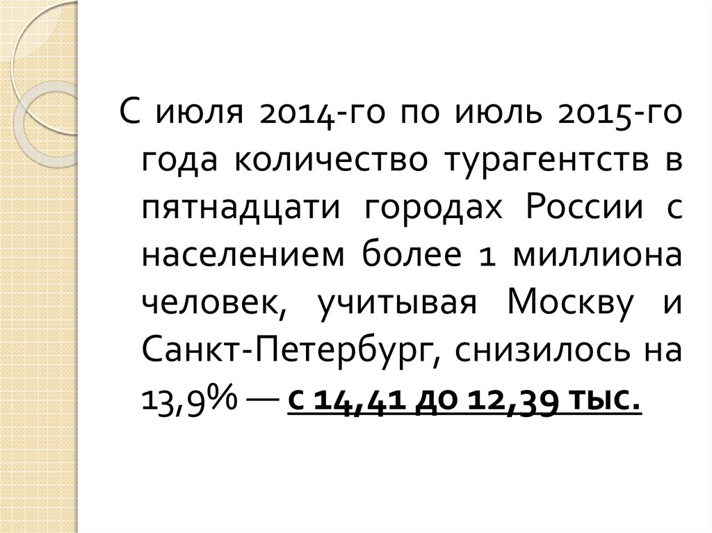 С июля 2014-го по июль 2015-гогода количество турагентств в
