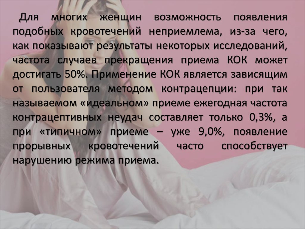 Для многих женщин возможность появленияподобных кровотечений неприемлема, из-за чего,