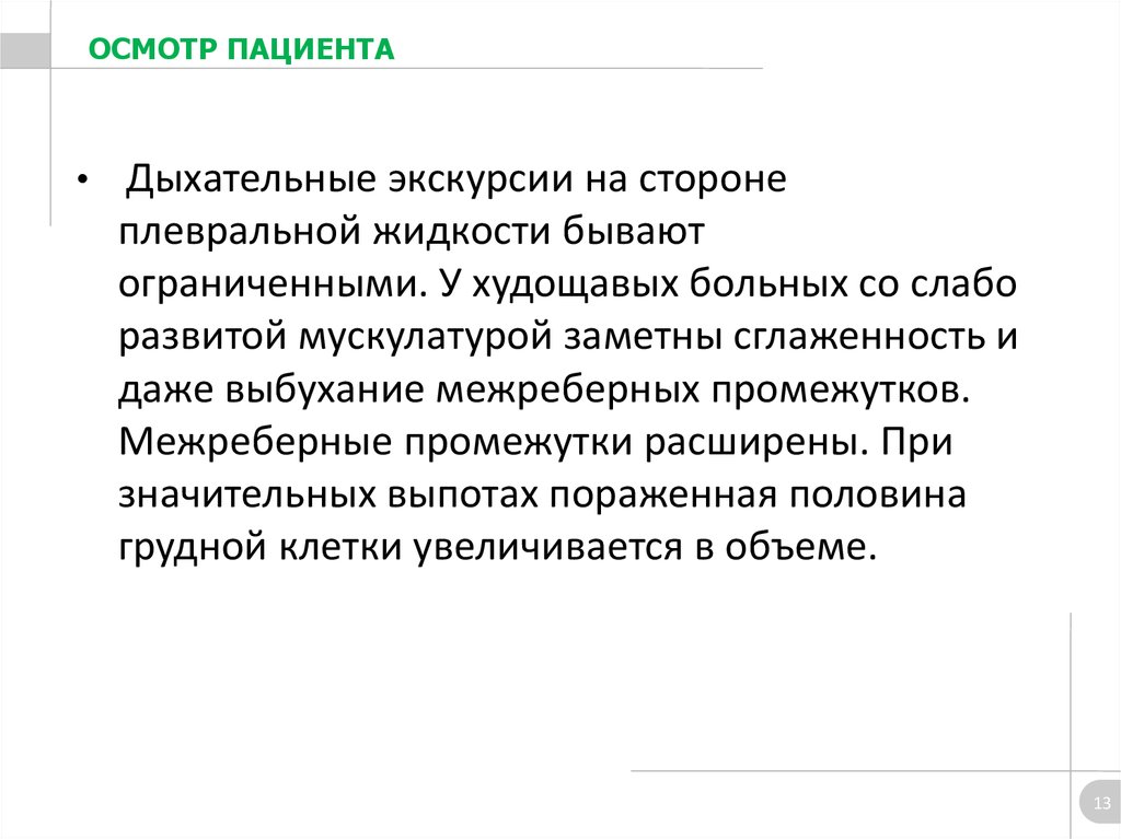 ОСМОТР ПАЦИЕНТАДыхательные экскурсии на стороне
