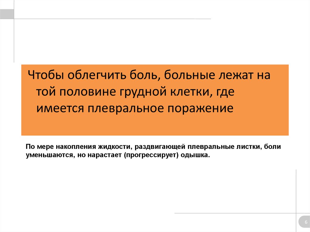 Чтобы облегчить боль, больные лежат натой половине грудной клетки, где