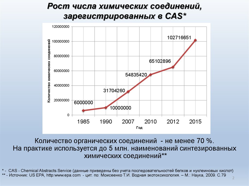 * - CAS - Chemical Abstracts Service (данные приведены без учета последовательностей белков и нуклеиновых кислот)