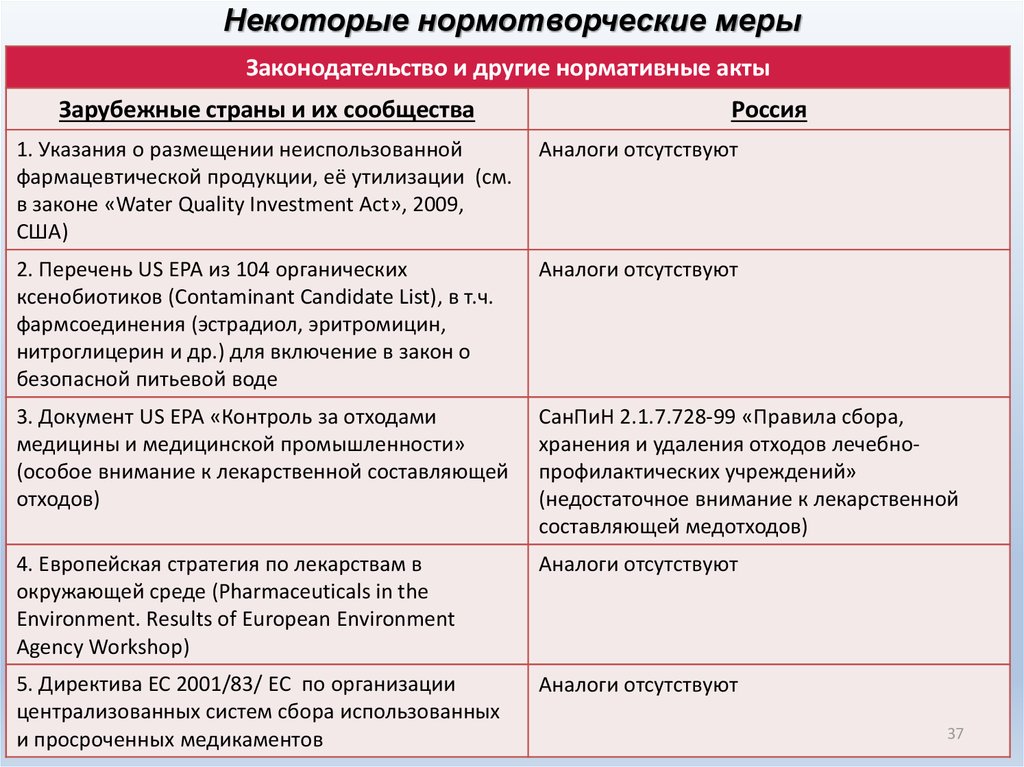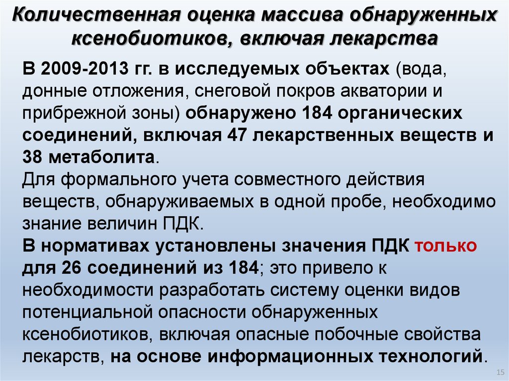 разработка норм ПДК для наиболее опасных лекарств (активное