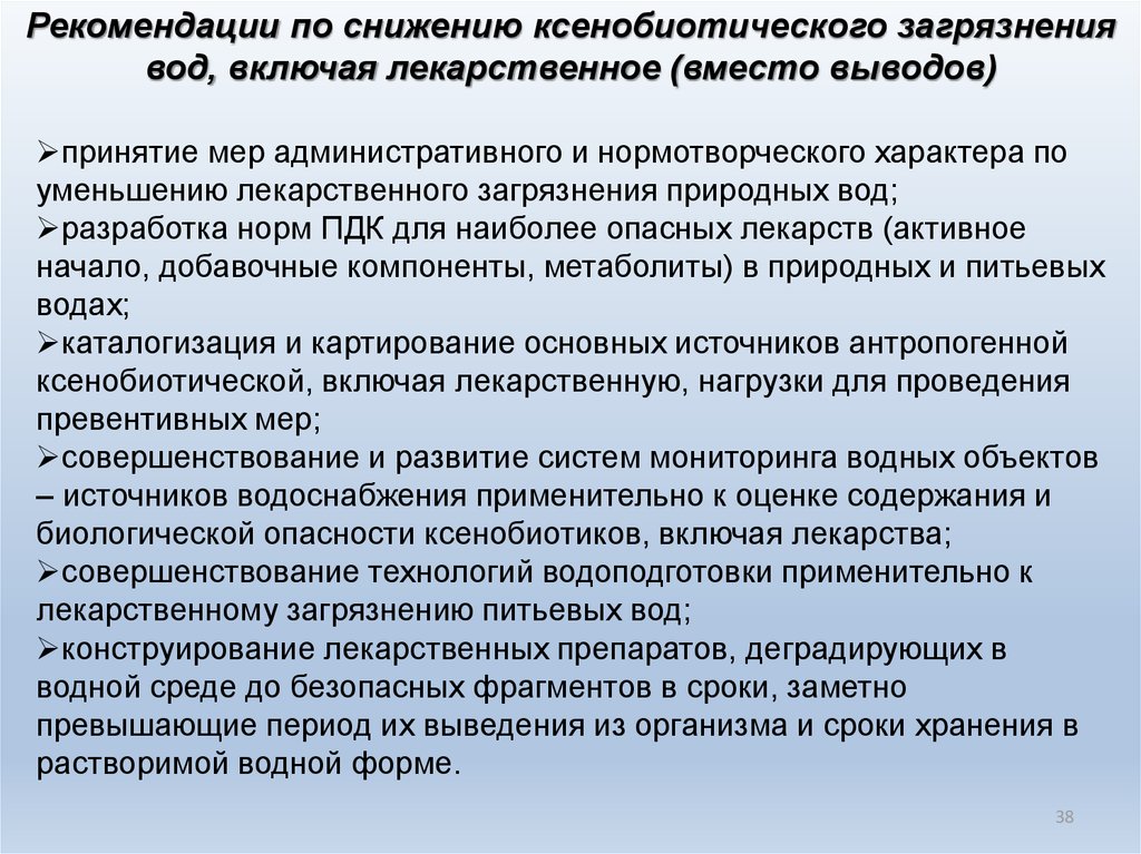 Рекомендации по снижению ксенобиотического загрязнениявод, включая лекарственное (вместо выводов)