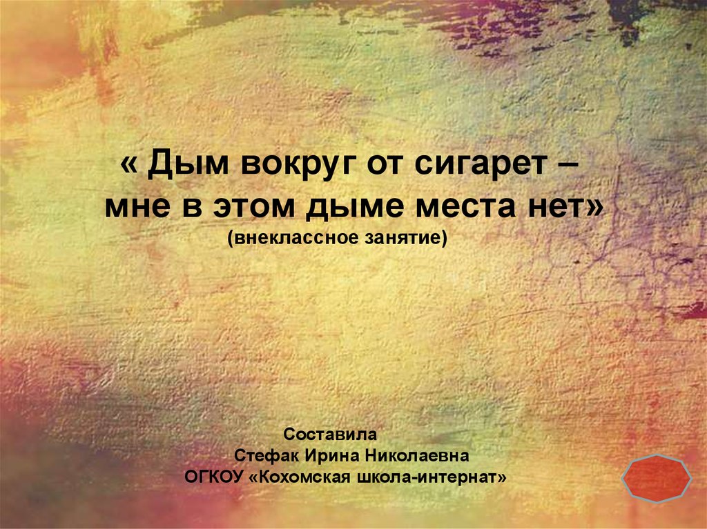 « Дым вокруг от сигарет –мне в этом дыме места нет»
