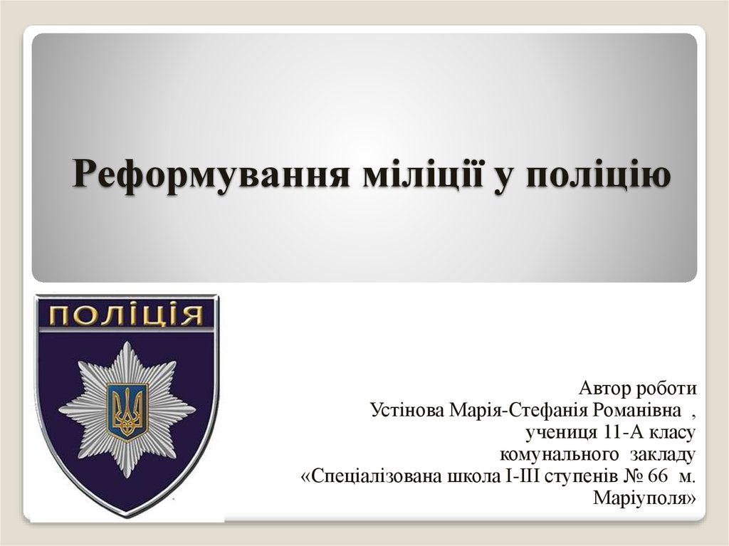 Головною метою реформування міліції єтрансформація існуючої репресивної моделі