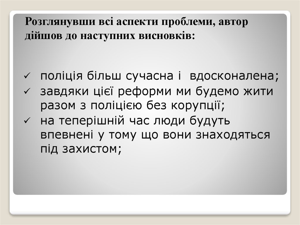 8. Розглянувши всі аспекти проблеми, автор дійшов до наступних висновків: