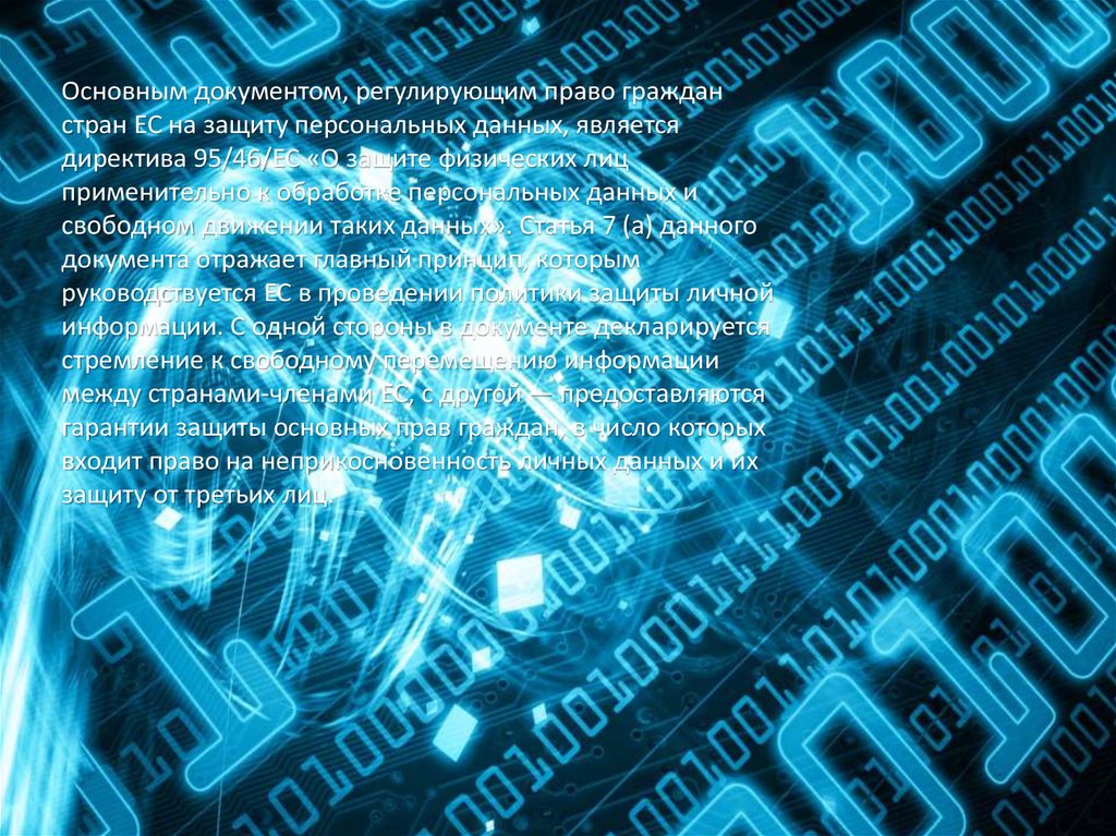 Основным документом, регулирующим право граждан стран ЕС на защиту персональных данных,
