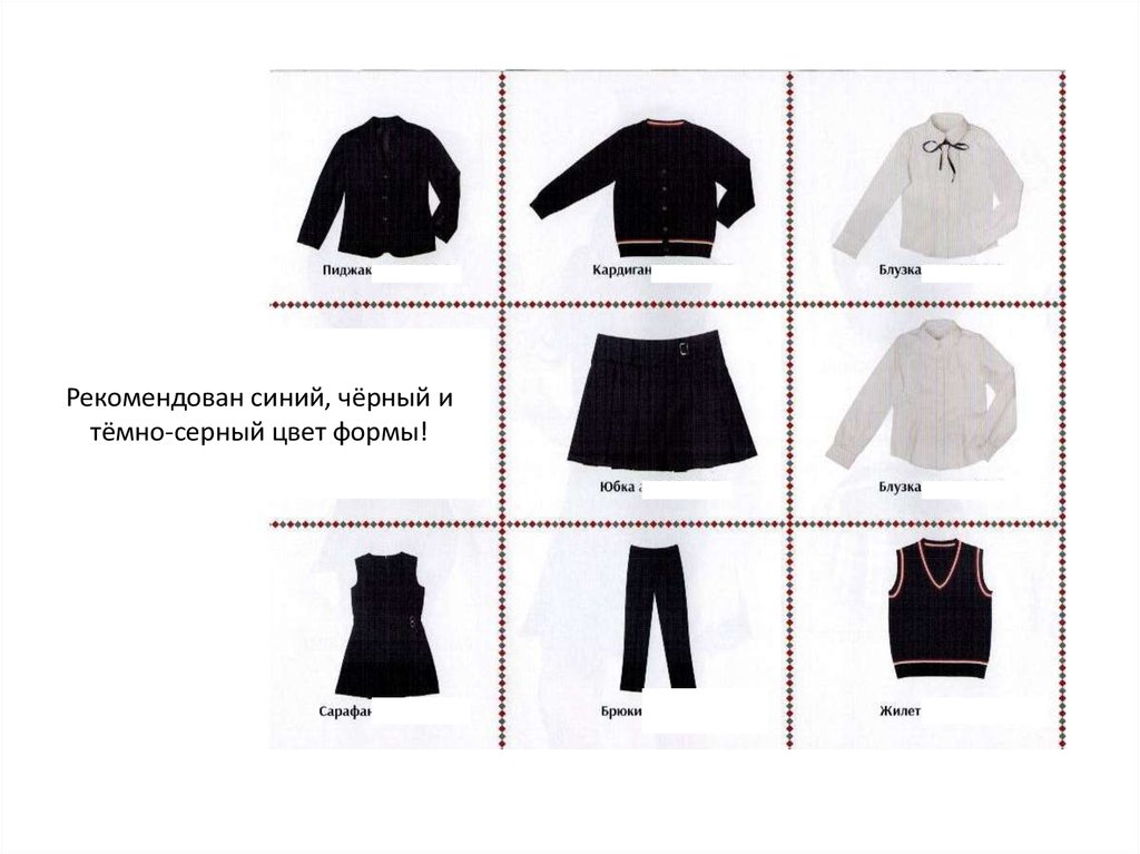 Рекомендован синий, чёрный итёмно-серный цвет формы!