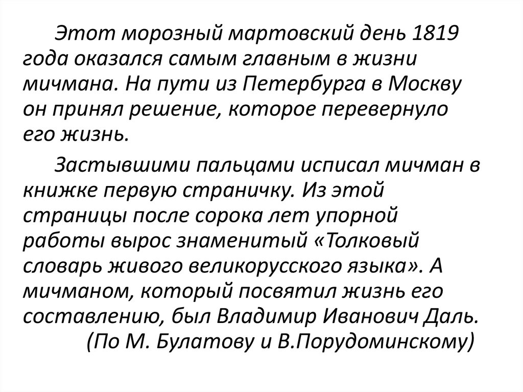 (По М. Булатову и В.Порудоминскому)