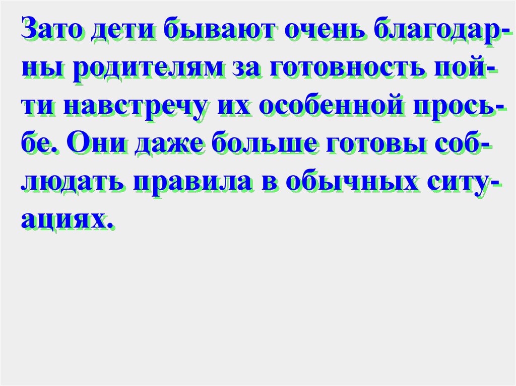 Зато дети бывают очень благодарны родителям за готовность пойти навстречу их особенной просьбе. Они даже больше готовы соблюдать правила в обычных ситуациях.15.