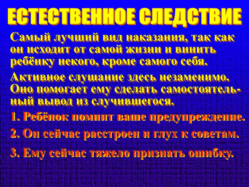 Оно помогает ему сделать самостоятельный вывод из случившегося.