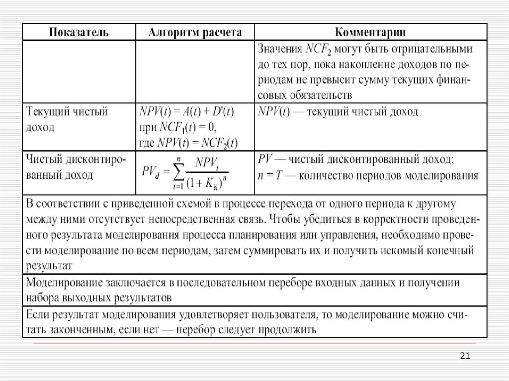 Алгоритм расчетов основных показателей, используемых при традиционной схеме моделирования