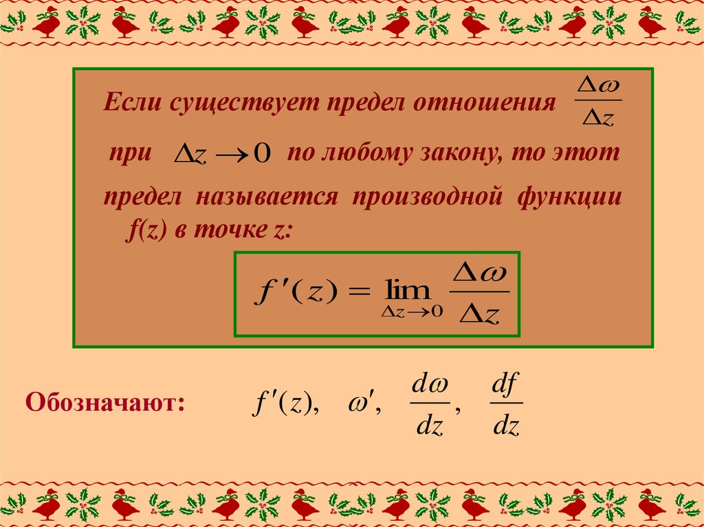 Введем понятие производной ФКП.Пусть независимой переменной