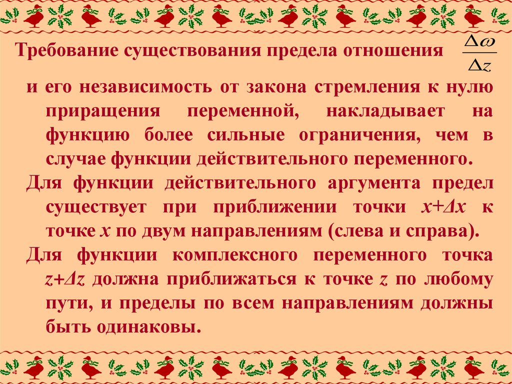 Если Δz = Δх, то есть точка z+Δz приближается к